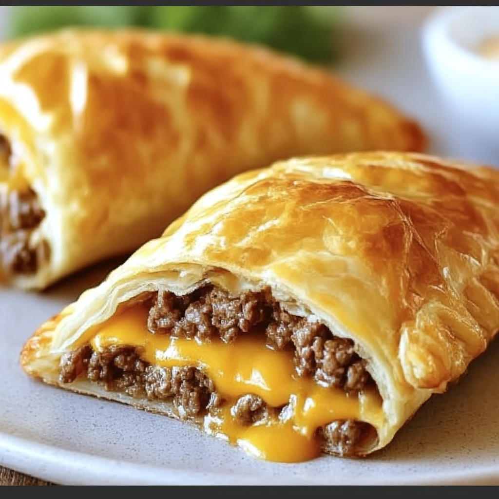 These Cheeseburger Pockets transform the classic American burger into handheld pastries by wrapping seasoned ground